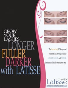 LATISSE® solution is a new prescription treatment used to grow eyelashes longer, thicker and darker. This treatment, which is approved by the U.S. Food and Drug Administration (FDA), provides a safe and effective alternative to eyelash extensions or messy mascara for women who have small or sparse eyelashes. With a simple daily treatment you apply in the comfort of your home, LATISSE can create more darker, longer, and thicker eyelashes.
