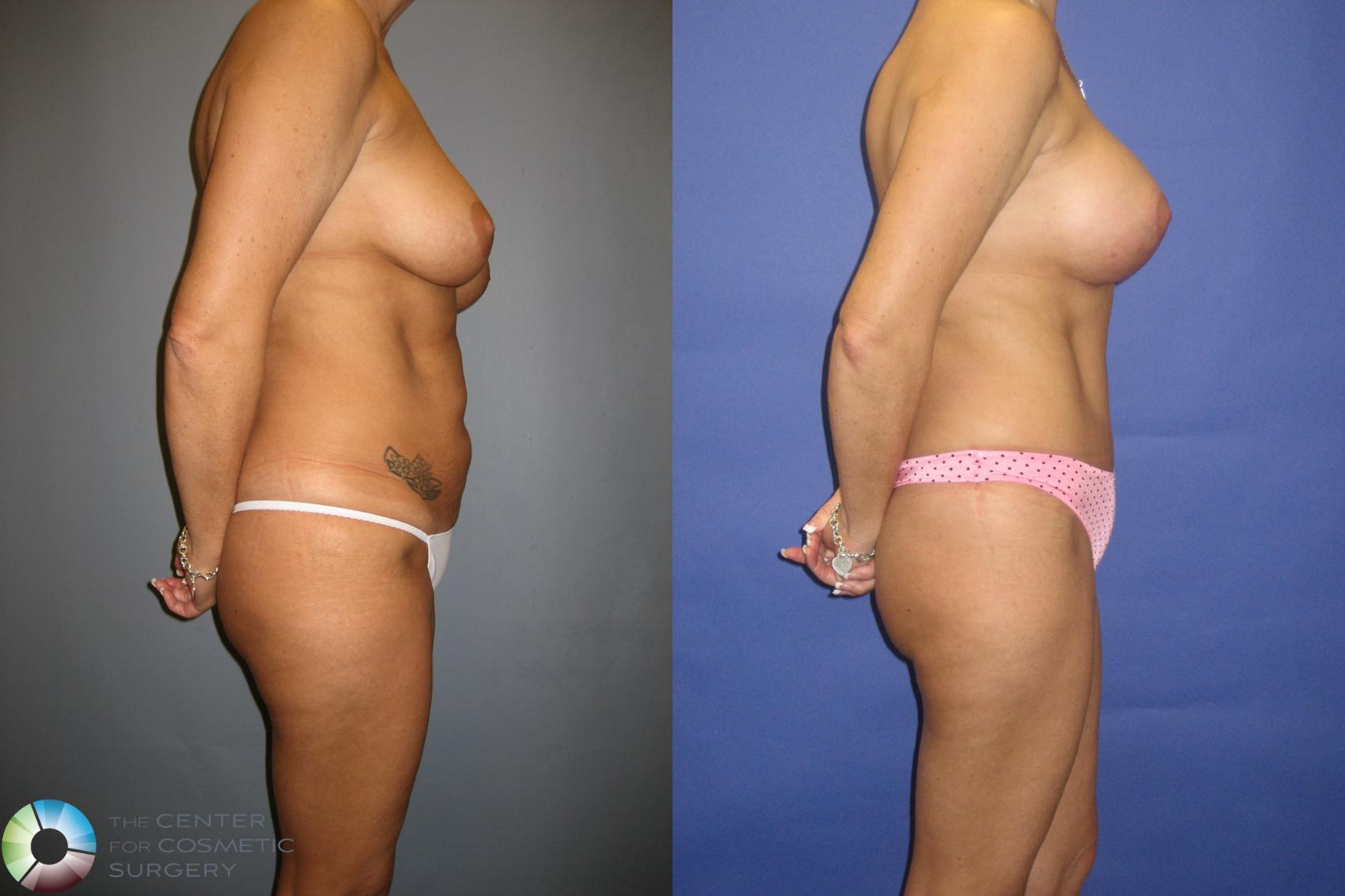 This is a 44 year old, 5'8", 150 pound woman who underwent a Denver "mommy makeover" in order to flatten and tighten her tummy and to lift and fill out her breasts. She underwent an abdominoplasty (tummy tuck) to remove extra skin and fat from her tummy and give her a tight, flat abdomen. She also had a breast lift (mastopexy) with breast augmentation using 286 cc smooth, round silicone gel implants. Her post-operative pictures are from 6 weeks after surgery.